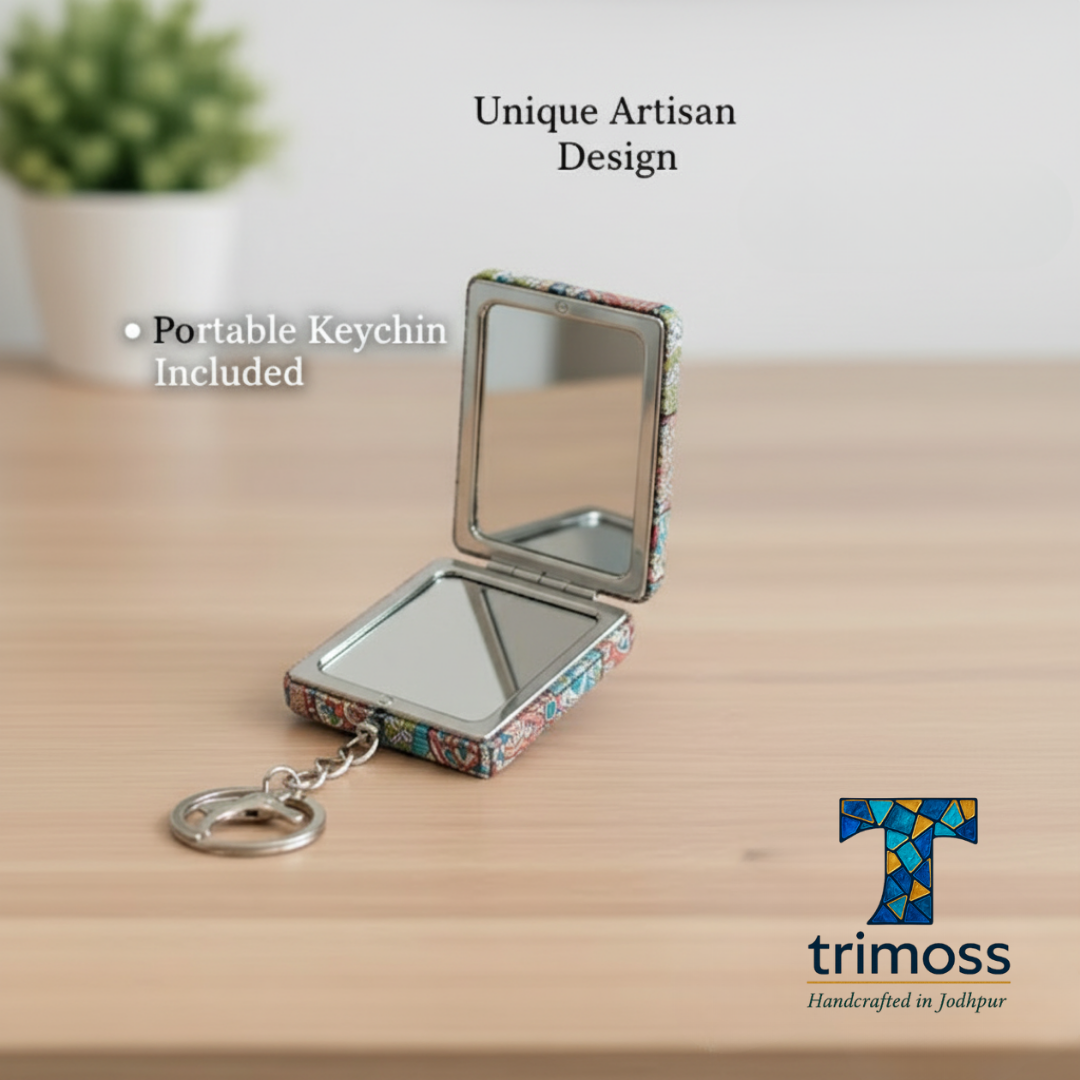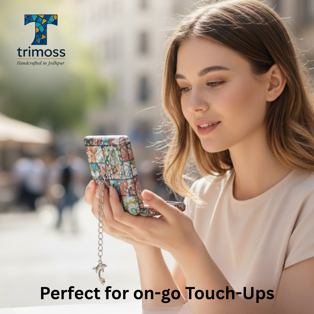 At Trimoss, we believe in celebrating the rich heritage of Indian artistry. Our Mandala Compact Mirrors are not mass-produced; they are lovingly handcrafted by skilled artisans in Jodhpur, known for its vibrant culture and traditional crafts. By choosing Trimoss, you’re not just purchasing a mirror; you’re supporting sustainable craftsmanship and bringing a piece of authentic Indian art into your everyday life.